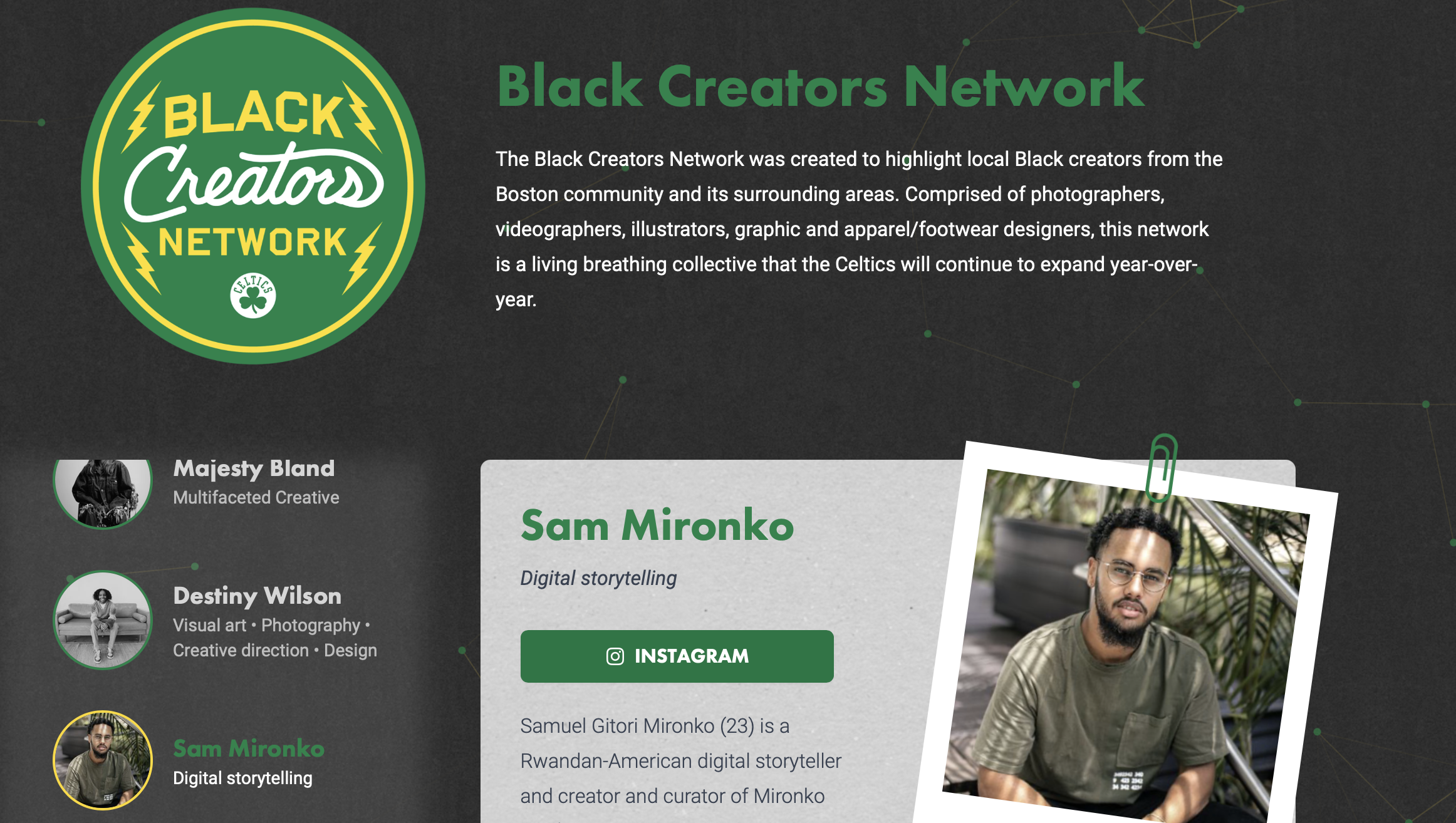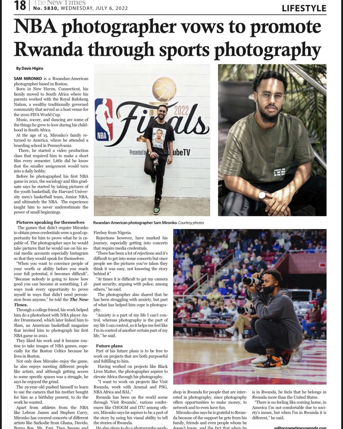 Sam Mironko is a photographer and director working in editorial, sports, concert, and events. Born in the U.S. and raised in South Africa by Rwandan and American parents, he is now based in Boston, working full-time as a freelance creative.